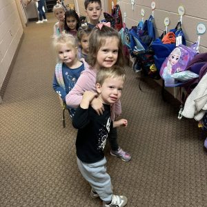 Children in the 2 ½ year old class should come to school in a pull-up (if not fully potty trained). Not to worry, potty training is one of the many things we work on in this class!